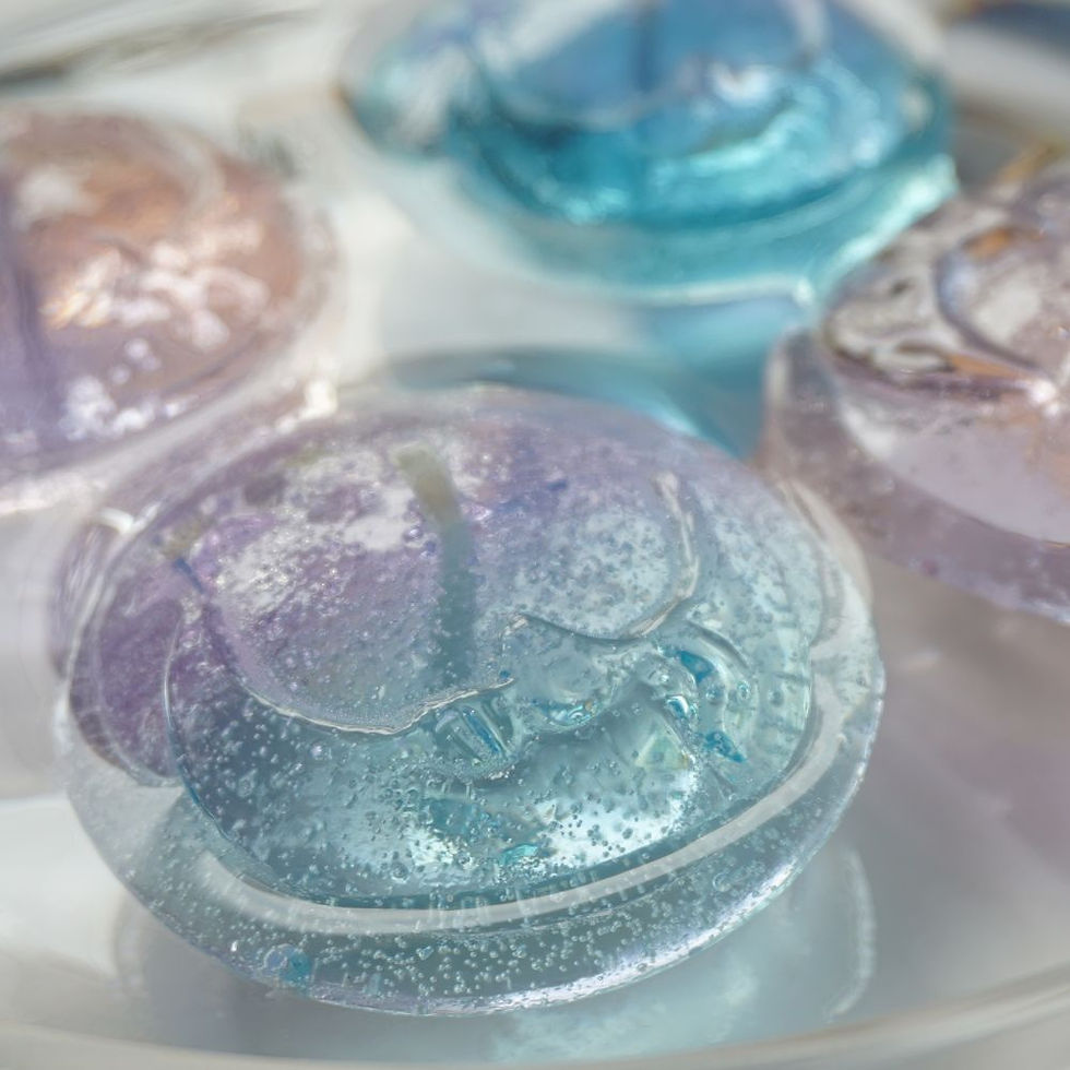 オイルワックス(流動パラフィン)という透明の原料を使っており、透明のフラワーベースなどに浮かべると底に反射した灯りがゆらゆら揺れるのが特徴です。