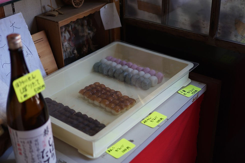 商店では鮎やだんごなども販売しています。懐かしい雰囲気。